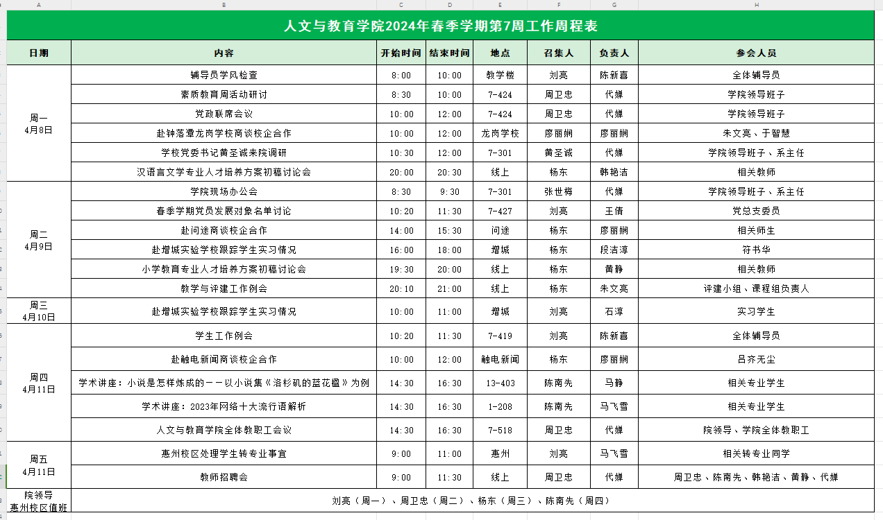 suncitygroup太阳集团2024年春季学期第7周工作周程表