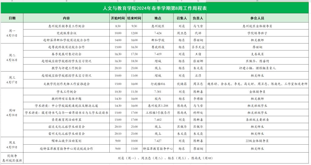 suncitygroup太阳集团2024年春季学期第8周工作周程表