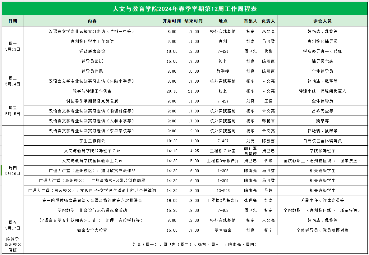 suncitygroup太阳集团2024年春季学期第12周工作周程表