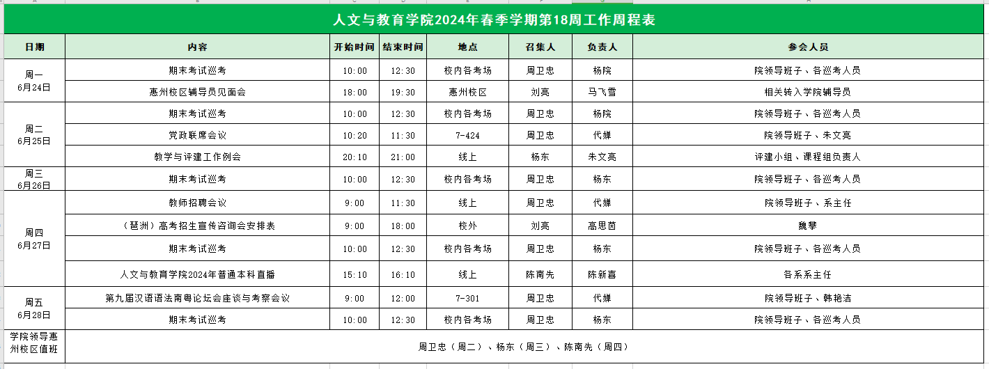 suncitygroup太阳集团2024年春季学期第18周工作周程表