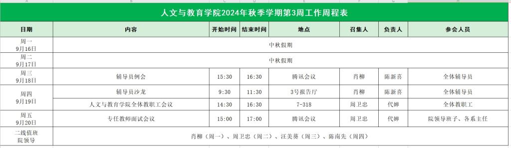 suncitygroup太阳集团2024年秋季学期第3周工作周程表