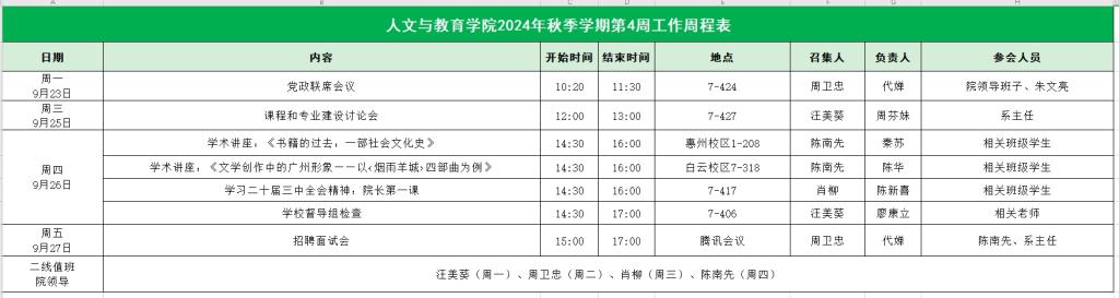suncitygroup太阳集团2024年秋季学期第4周工作周程表
