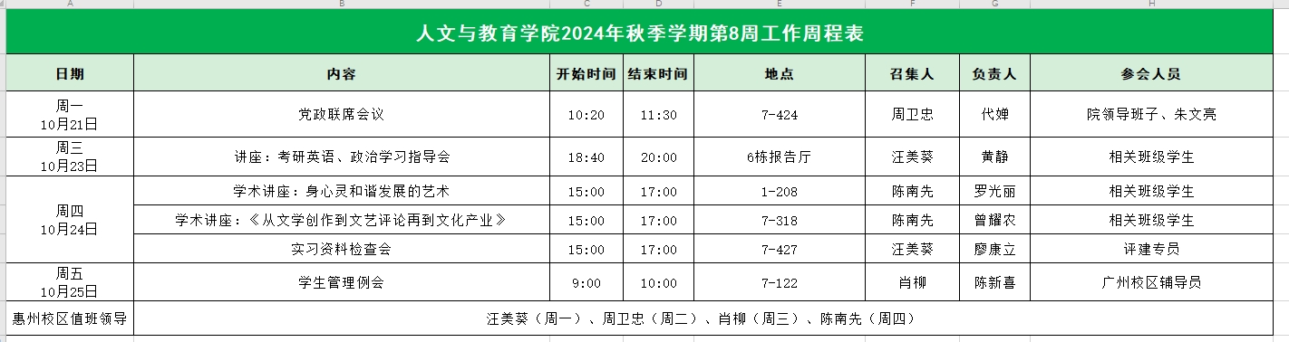 suncitygroup太阳集团2024年秋季学期第8周工作周程表