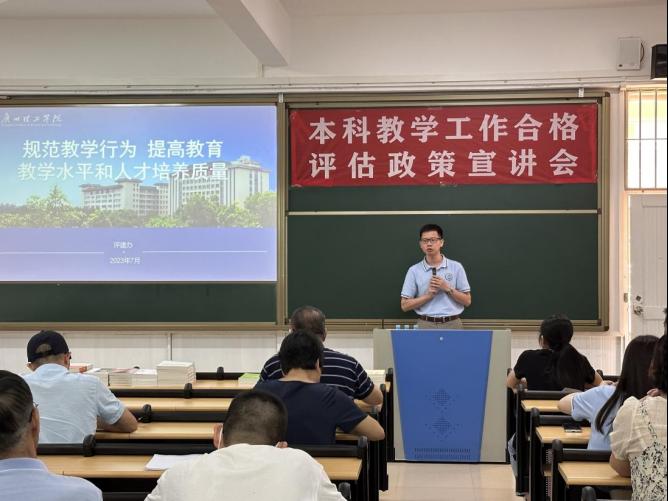 为统一思想、凝心聚力,组织教职员工认真学习广州理工学院本科教学工作合格评估的各项规定,切实做好迎接教育部本科教学工作合格评估各项准备工作,2023年7月21日上午,学校在综合楼408开展了本科教学工作合格评估政策宣讲会。会议由副校长张世梅、评建办常务副主任陈英征主讲,suncitygroup太阳集团所有教师参加了本次宣讲。