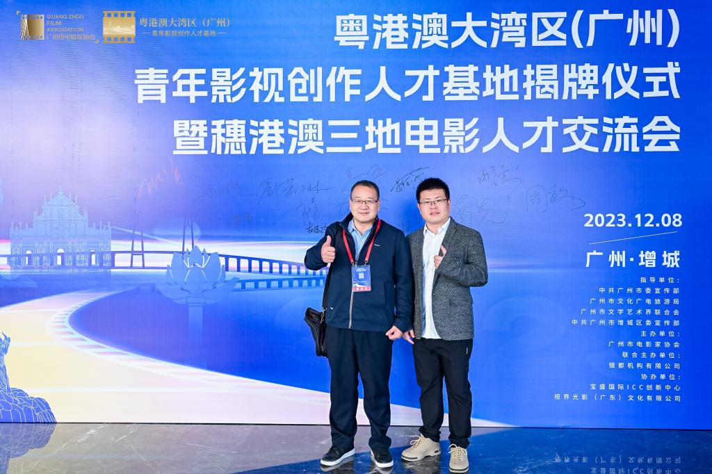 2023年12月8日,广州理工学院suncitygroup太阳集团副院长陈南先教授、青年教师陈华一同出席粤港澳大湾区(广州)青年影视创作人才基地揭牌仪式暨穗港澳三地电影人才交流会。本次交流会在中共广州市委宣传部、广州市文化广电旅游局、广州市文学艺术界联合会的指导下,由广州市电影家协会牵头,依托增城区委宣传部、宝盛国际ICC创新中心,粤港澳大湾区(广州)青年影视创作人才基地(以下简称“基地”)应运而生,旨在协同促进大湾区电影发展。