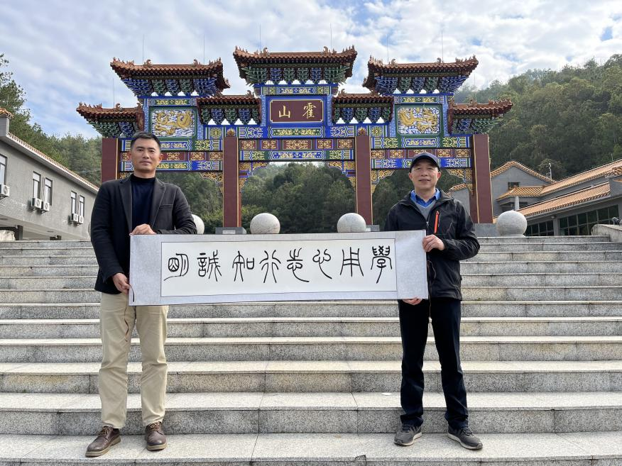 随后,采风团队开始攀登霍山。山路蜿蜒,绿树葱茏。行至半山腰,覃仕君老师饱含深情地朗诵起当年苏轼漫游至此、诗兴大发的诗句:“霍山佳气绕葱笼,势压循州第一峰;石径面尘随雨扫,洞门无锁会借云封;船头昔日仙曾渡,瓮里当年酒更浓;捷步登临开眼界,江南秀色映瞳瞳。” 伴随着诗篇的回响,老师们沉浸于霍山的壮丽景色中,寻找着创作的灵感。