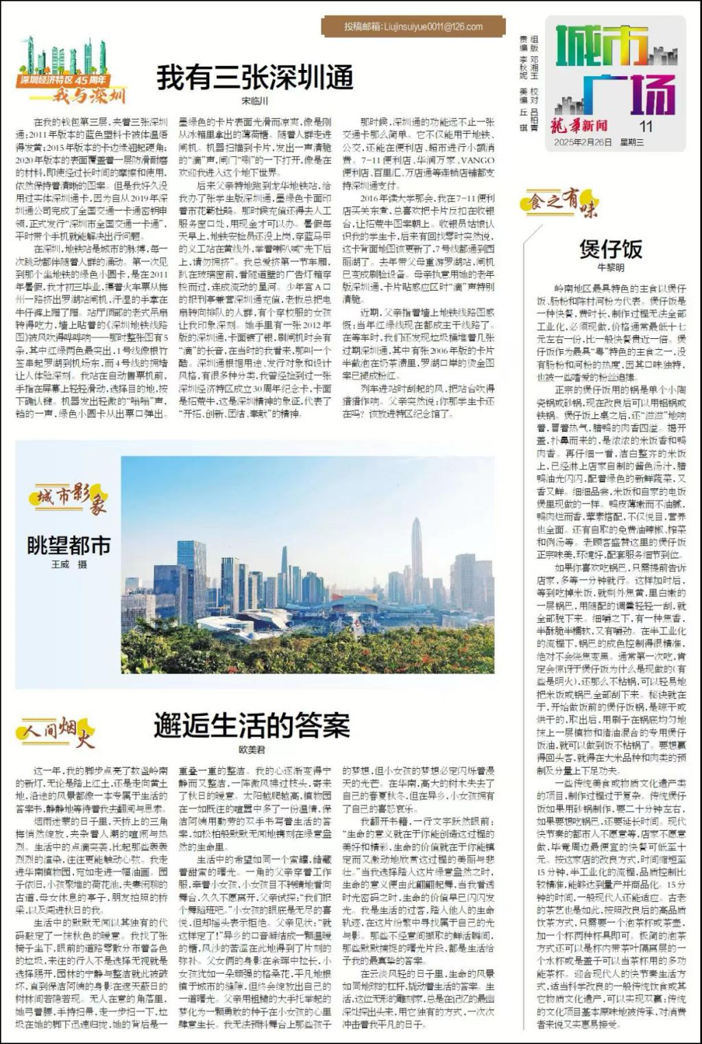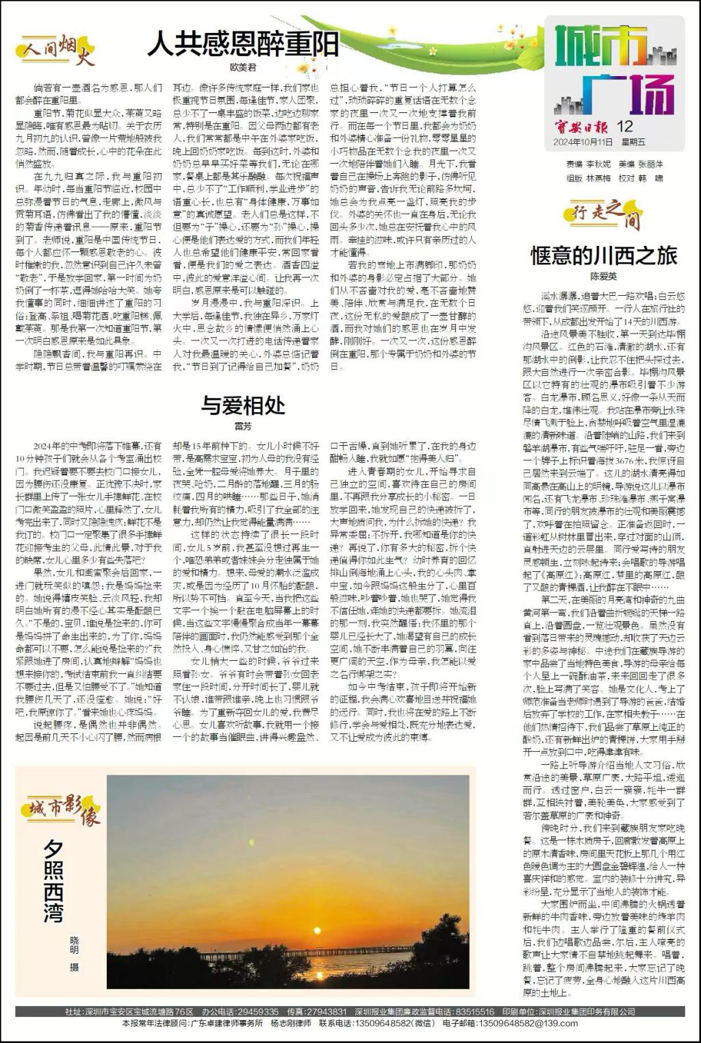 欧美君同学《邂逅生活的答案》发表于2025年2月26深圳宝安日报;《人共感恩醉重阳》发表于2024年10月11日深圳宝安日报。